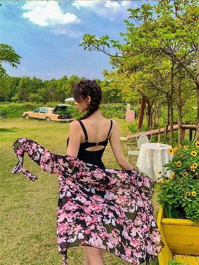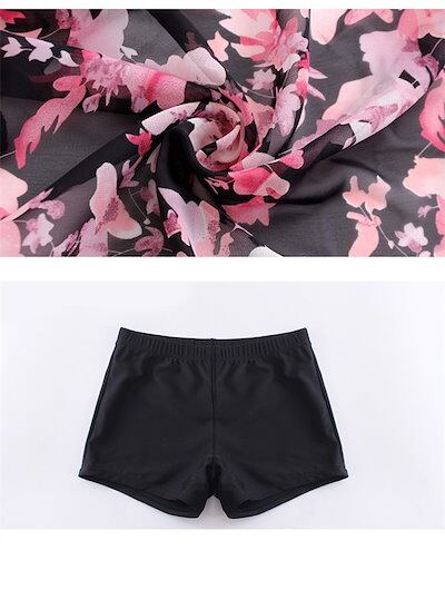 水着 ワンピース お腹カバー お尻カバー 二の腕カバー おしゃれ 露出控えめ かわいい ブラック ガーリー 紫外線カット トップス付 レディース ピンク 黒 プラスサイズ ワイヤー入り 6L 5L 4