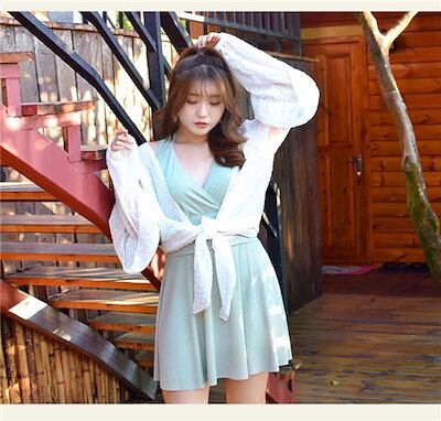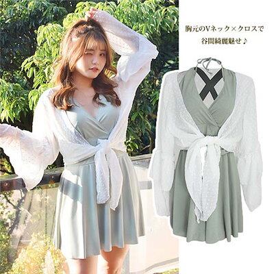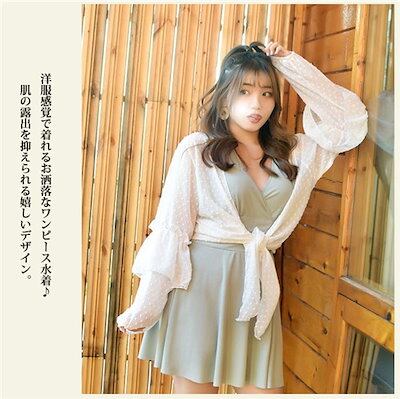 ガーリー ブラック グリーン お腹カバー お尻カバー 二の腕カバー おしゃれ 露出控えめ 体型カバー 紫外線カット トップス付 レディース 緑 黒 プラスサイズ ワイヤー入り 3l 4l 5l 6l