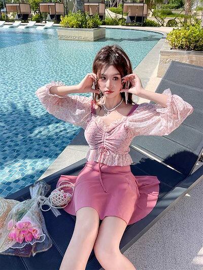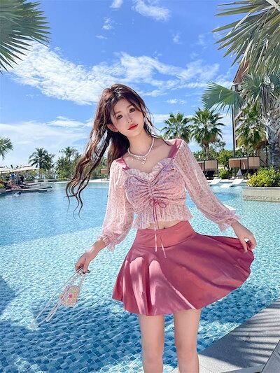 レディース 上下セット水着 服みたいな 大盛り 着?せ 温泉 かわいい 水陸両用 ワイヤーなし パット付 ビーチ 海 体型カバー ビーチ水着 おしゃれ プール S M L XL