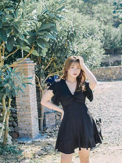 レディース ぽっちゃり 大きいサイズ 水着 体型カバー ワンピース Vネック 背中だし 着痩せ ワイヤー入り パッド付 7L 服みたいな水着 ビーチ 海デート 温泉 セクシー 大人可愛い ブラック マ