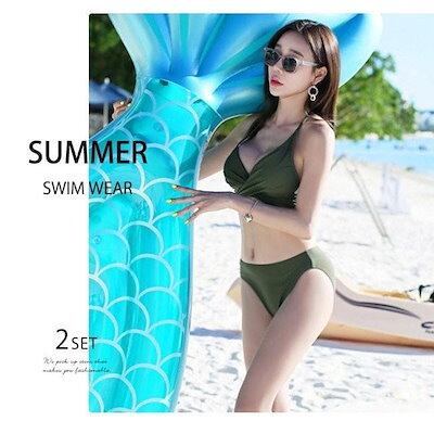人気商品超目玉 水着 レディース ビキニ セクシー ホルターネック 胸パッド ワイヤーなし クロス セパレート ビーチ 盛れる