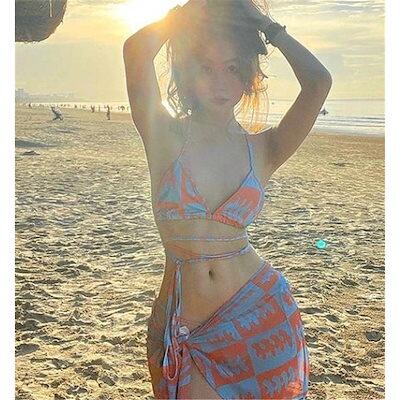 レディースビキニ2点セットスイムウェアセクシー総柄セパレート胸パッドワイヤー無おしゃれ水泳プリント海水浴ビーチ大人