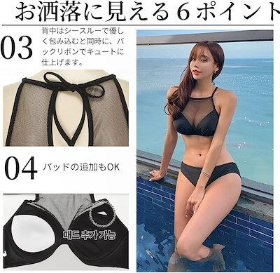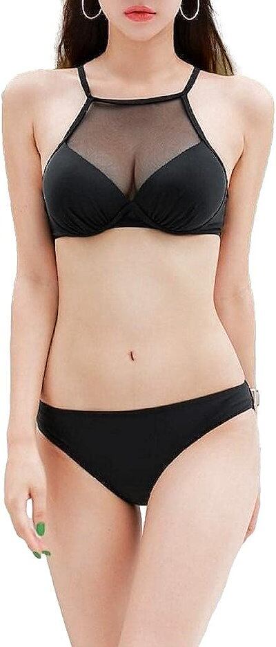 レディース 水着 ビキニ 2点セット シースルー セクシー水着 女性水着 セパレーツ 透け感 上下セット タンキニ スイムドレス ビーチウェア ブラック水着 単色水着 ック ワイヤー入り メッシ