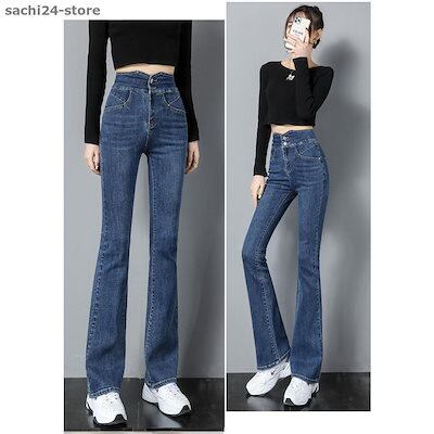 春夏新作 フレアパンツ デニム レディース ロング丈 スキニー ハイウエスト ストレッチ ボトムス ジーンズ 美脚 オフィス 通勤 OL