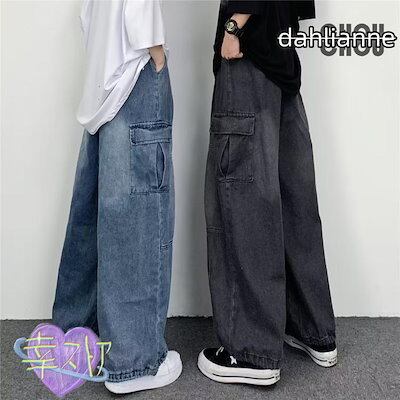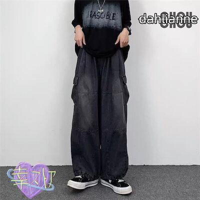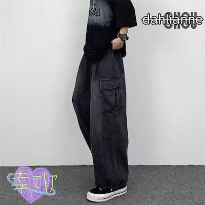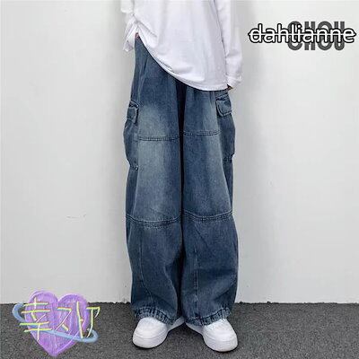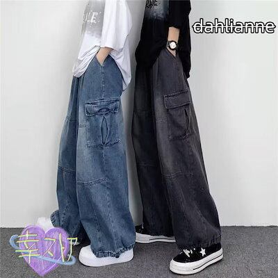 ゆったり デニム ワイドパンツ カーゴパンツ レディース ゆったり ジーンズ 春 秋冬 ワイド 大きいサイズ シンプル 体型カ
