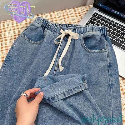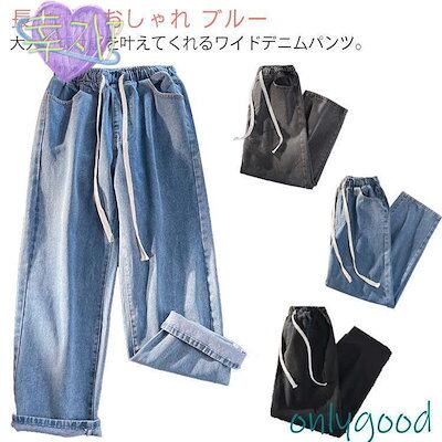 デニムパンツ ウエストゴム レディース 大きいサイズ ストレート ゆったり 秋 夏 春 冬 ワイドパンツ 体型カバー 着痩せ ボ ジーンズ ジー