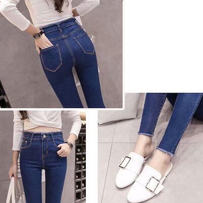 新追加 2025 新作春 脚長効果! デニムパンツ レディース デニムパンツ レディース スキニー パンツ ジーパン 無地 フリンジ 九分丈 ダメージ加工 ストレッチ ボトムス カジュアル