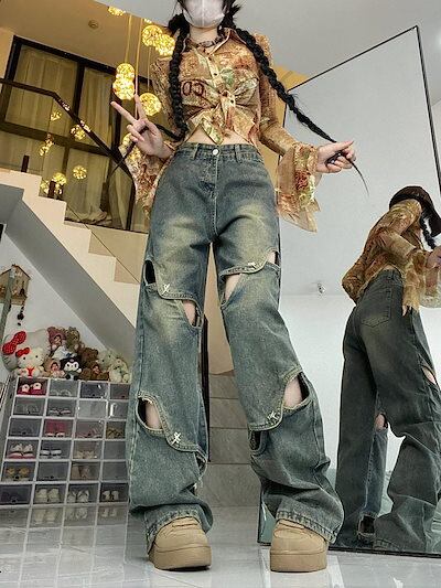 ファーウェイ 2024 春夏パンツ デニム ジーンズ スキニー レッグ ハイウエスト 脚長効果 美脚効果 細見え 春 ライトブルー 系 カジュアル ズボンファッション デザインお出かけ