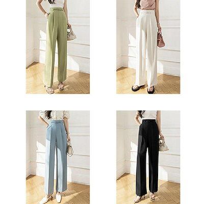 4月の新品パンツ スラックス ストレートパンツ レディース 無地 長ズボン 美脚 カジュアル 夏 春 体型カバー 通学 通勤 オフィス