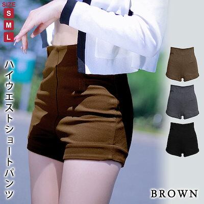 (ROSE)パンツ レディース 春 黒 ショーパン 短パン パンツ ハイウエスト ブラック ブラウン ダークグレー ズボン ビーチパンツ 大人