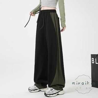 【新作セール】【即納 】ワイドパンツ レディース 2025春新作 ボトムス ズボン ストレート ウエストゴム リボン付き ハイウエスト 長パンツ 長ズボン 運動着 部屋着 カジュアル