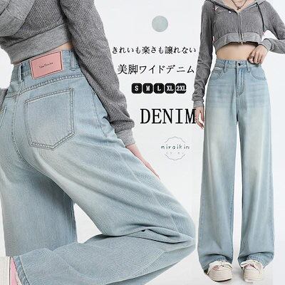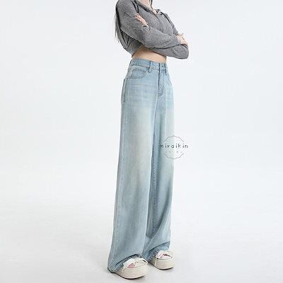 【新作セール】【即納 】ハイウエスト ワイドパンツ デニム ストレートパンツ レディース ジーンズ デニムパンツ 春 春夏 夏 美脚 ロングパンツ ボトムス ズボン 長ズボン ライトブルー