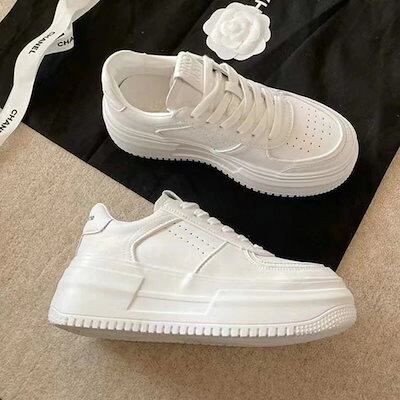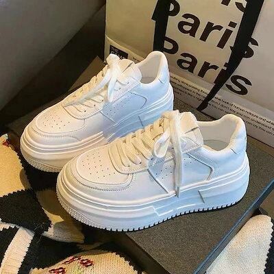 買い逃し注意 ホワイト 厚底スニーカー 韓国ファッション ラウンドトゥ レースアップ 厚底スニーカ