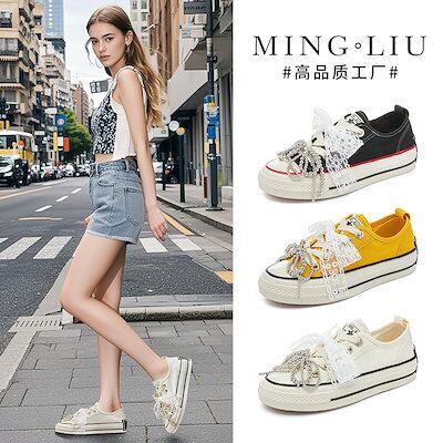 女性のための新しい弓のキャンバスシューズ2025春と夏の厚底の高級ホワイトシューズ女性のためのオールマッチカジュアルシューズ