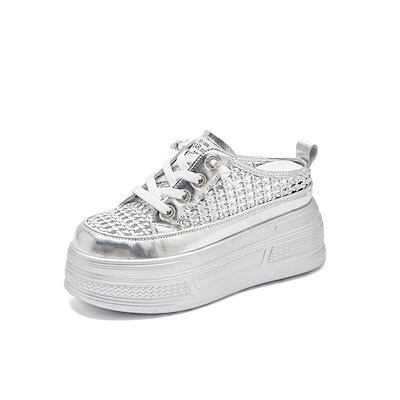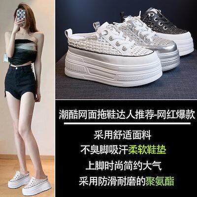 本革ハーフサポートホワイトシューズレディース2025年夏新作ラウンドトゥ厚底ハイカットソリッドカラー透明メッシュレディースカジュアル