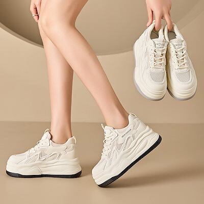 レディースシューズ 2025 春夏 本革 カジュアル メッシュ 通気性 スポーツシューズ 身長アップ おしゃれ ラウンドトゥ 厚底 白靴