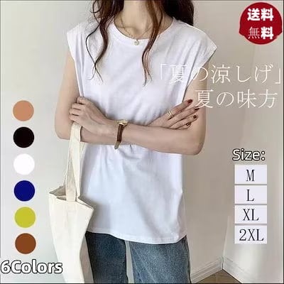 袖なし Tシャツ 半袖 ノースリーブTシャツ 無地 シンプル クルーネック 大きいサイズ 韓国ファッション トップス