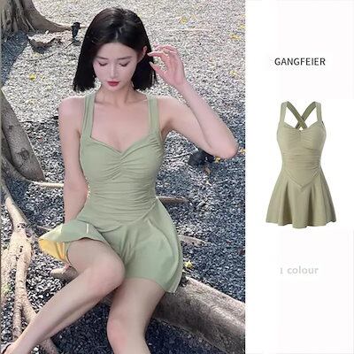 夏の新作ワンピース水着 女性の薄いバックレススリムセクシーな小さな胸ポリポリ妖精ファン温泉水着で浸す