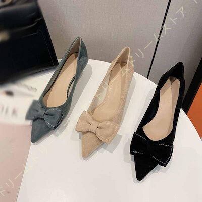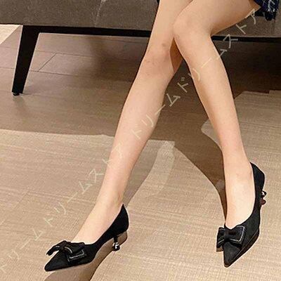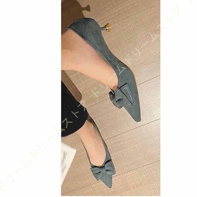 パンプス ポインテッドトゥ 4cmハイヒール ピンヒール レディース 美脚 スエード 軽量 ローヒール オールシーズン ヒールパンプス リボン ハイヒールシューズ