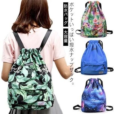 ナップザック 撥水 防水バッグ 大容量 巾着 バッグ レディース メンズ ジュニア ポッケト付 軽量 ナイロン 旅行バッグ 防災グッズ プール 水泳 フィットネス ジム ジュニア 肩紐長さ調整可能