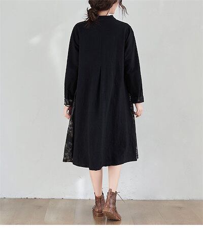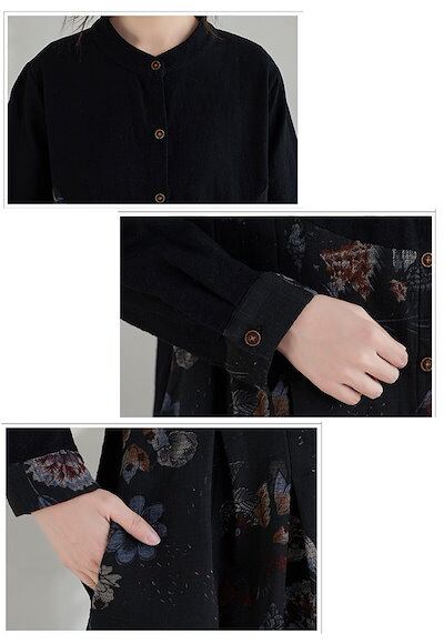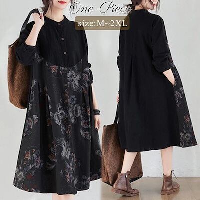 ロングワンピース レディース 春夏 ロングワンピ ワンピース ロング丈 マキシ丈ワンピース 花柄 シャツワンピース 綿麻混 長袖 大きいサイズ 体型カバー オシャレ 20代 30代 40代 50代 切