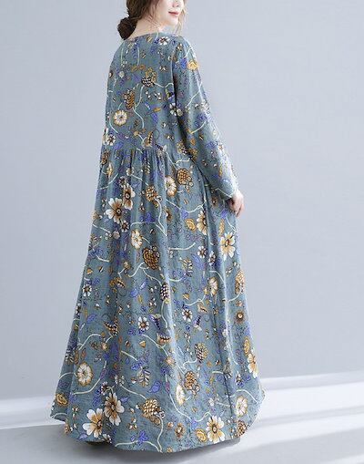 ロングワンピース レディース きれいめ ワンピース 花柄 マキシ丈ワンピース 大きいサイズ ゆったりワンピース 夏 ロング フレアワンピース Aライン ふんわり ボリューム 長袖ワンピース フレア ギ