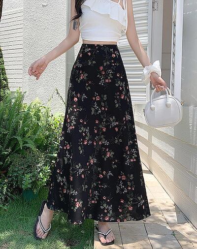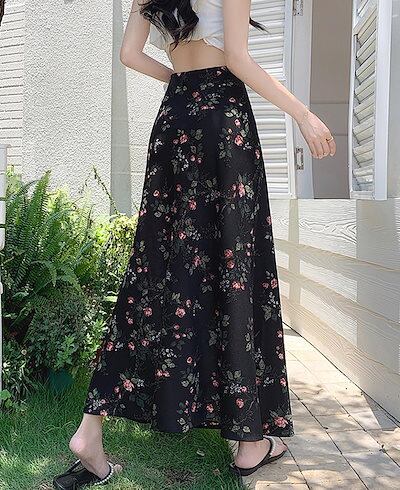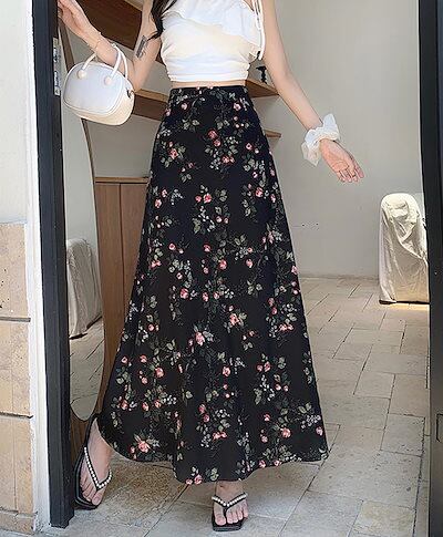 サテンスカート レディース マキシ丈 ロングスカート 花柄 aライン ゆったり ハイウエスト 細身 フレア カジュアル リゾート ビーチ 通気性 通勤 夏服