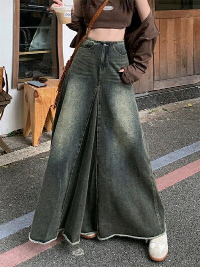 デニム スカート レディース ボトムス ロング スカート マキシ丈スカート デニム ロングスカート ボトムス ロング丈 マキシ丈 フレア Aライン ハイウエスト 大きいサイズ かっこいい 大人 体型