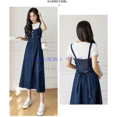 (6月)サロペットワンピース 春 デニムサロペット ジャンパースカート ロング マキシ丈 ノースリーブワンピース レディース Aラインインディゴ 大人可愛い ワンピース