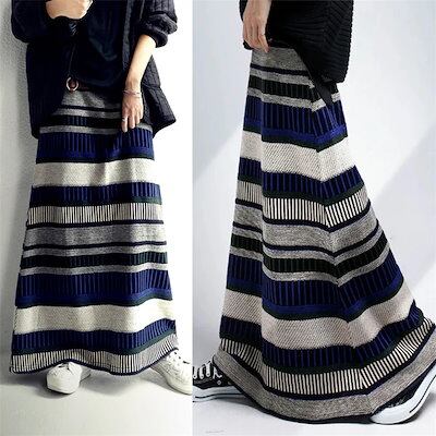 早い者勝ち フォーリンスタイル ストライプ 2025春と秋 カジュアル ニットスカート ロングスカート ボーダー レディース