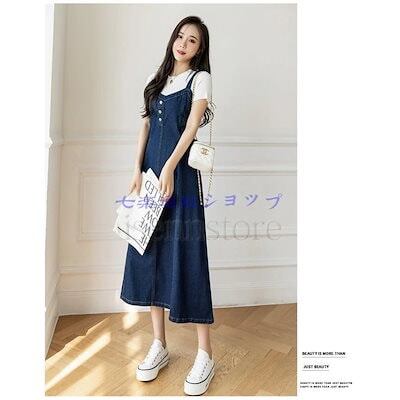 (6月新品)サロペットワンピース 春 デニムサロペット ジャンパースカート ロング マキシ丈 ノースリーブワンピース レディース Aラインインディゴ 大人可愛い ワンピース