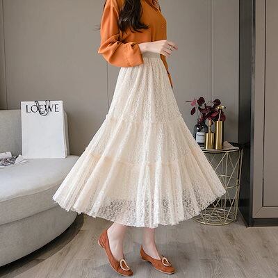 【3シーズン着回し】ミディアムスカート レディース Aラインハーフスカート ハイウエストロングスカート マキシ丈 フレアスカート ルスカート シンプル きれいめ 可愛い 春 夏 秋 対応 通勤