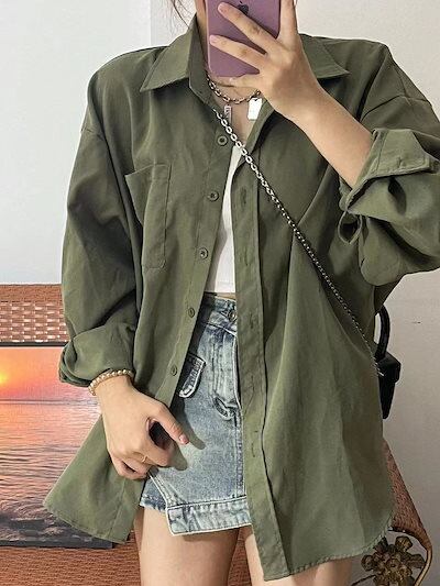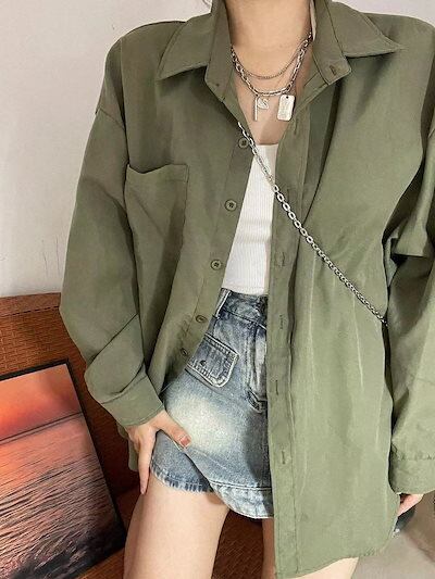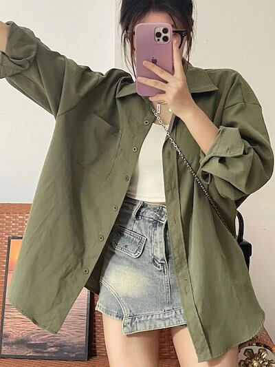 2025 春 夏 シャツ 長袖 ブラウス レディース サマーグリーンシャツ カジュアル トップス レディース