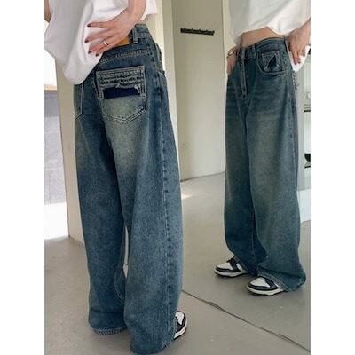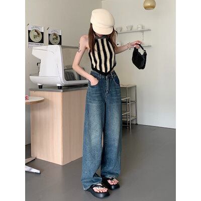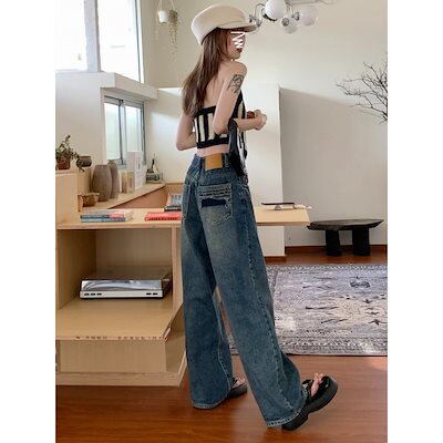 大人気 デニムパンツ 秋 新作 ジーンズ ワイド ハイウエスト 春 カジュアル