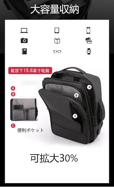今も人気携帯用収納バッグ 耐摩耗リュック大容量通学出張旅行用可拡大防水通勤パソコンバッグ USB充電可能
