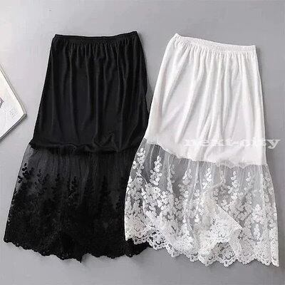 ペチコート花柄ストレッチレースチラ見せ66CMインナーレディーススカートロング丈ウエストゴム膝下丈裾レース付き下着