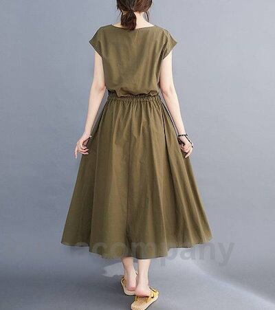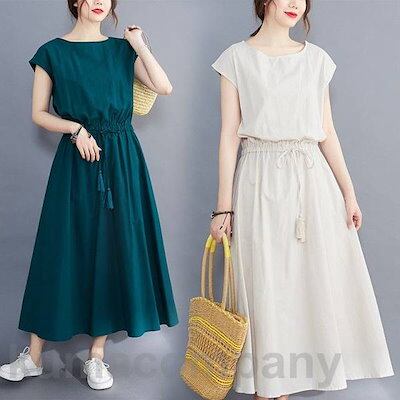 ロングワンピース フレンチスリーブ ワンピース 半袖 ロング マキシ丈 レディース タックワンピース カジュアル 夏 ウエストマーク 大きいサイズ 3L ゆったり 黒 無地 シンプル マキシワンピース