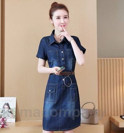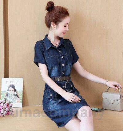 デニム ワンピース レディース ミニ丈 ミニワンピース 半袖 シャツワンピース 春夏 ウエストマーク 大きいサイズ 3L 4L 5L 6L カジュアル 襟付き フロントボタン 韓国 可愛い セクシー