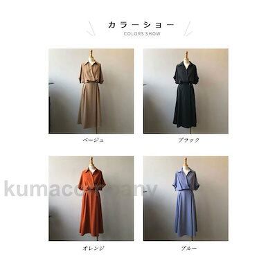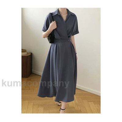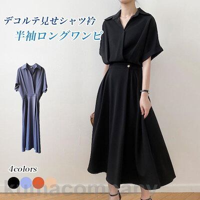 ワンピース 夏 ロング レディース シャツワンピース 開襟 半袖 ロングワンピ ウエストゴム 半袖ワンピース レトロ オフィス シャツワンピ 無地 プレゼント
