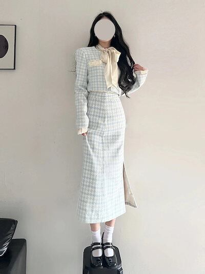 【2枚購入で200円 OFF!急速出荷】レディースチェック柄ワンピース秋冬ウエスト痩せロングスカートツーピーススーツ
