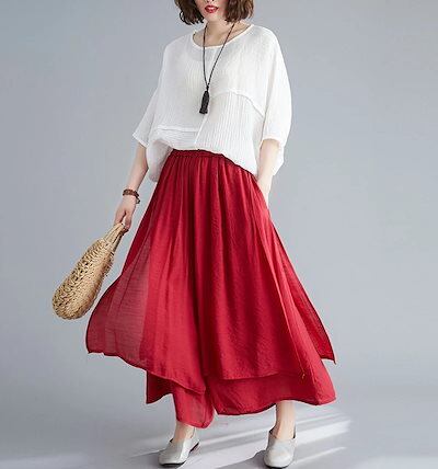 【短納期 1枚2144円!2枚購入で20%OFF】ワイドパンツ レディース 春 夏 ロングパンツ スカート風 パンツ 綿麻風 ガウチョパンツ ロング ワイド ハイウエスト ウエストゴム ボトムス ポケ