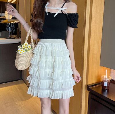 【急速出荷!】ティアードスカート ロングスカート ショートスカート ルスカート フリル スカート 安全パン付き 切替 ウエストゴム レディース フェミニ2523