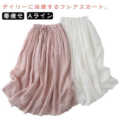 送料無料 ロングスカート 春夏 レディース スカート ミモレ丈スカートロング丈 ミモレ丈 ふんわり フレアスカート Aライン ウエストゴム 大人かわいい リネン混 森ガール 着痩せ おしゃれ ゆったり