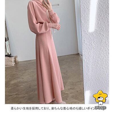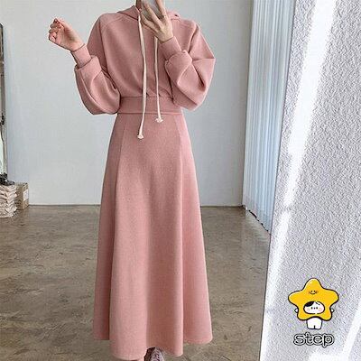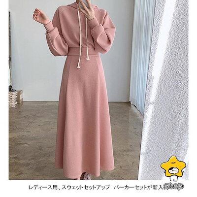 フード付き 柔らかい 春秋 上下セット シンプル ポケット レディース パーカーセット ウエストタック ゆったり ロングスカート