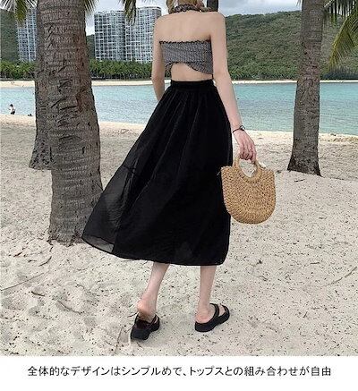 フレアスカート レディース ロングスカート 薄手 ギャザースカート ラインスカート 透明 裏地付き スカート マキシ丈 サマースカート ウエストゴム おしゃれ ボトムス ライン マキシスカート