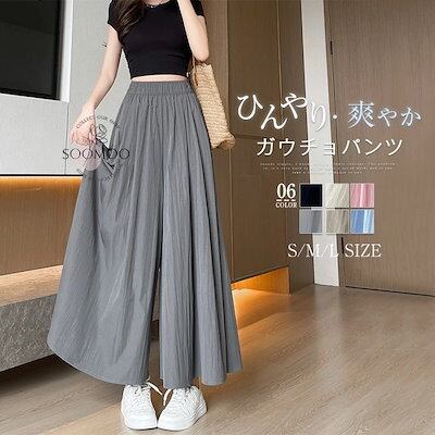 ワイドパンツ 春夏 ガウチョパンツ ひんやりパンツ スカート見える レディース フレアパンツ 大きいサイズ ロングパンツ 爽やか ウエストゴム エンボス バギーパンツ ギャザー 美脚パンツ ゆったり