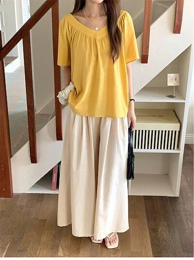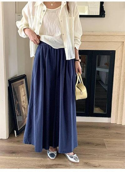 ワイドパンツ 春夏 ガウチョパンツ コットン パンツ スカート見える レディース フレアパンツ 大きいサイズ ロングパンツ 爽やか ウエストゴム 綿 バギーパンツ ボトムス 美脚パンツ ゆったり リラ