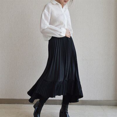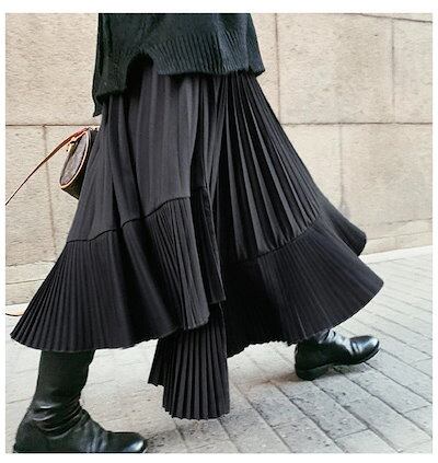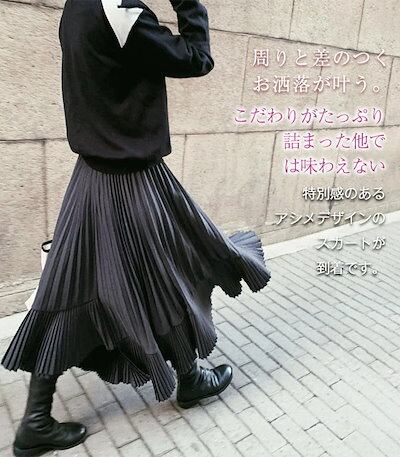 プリーツスカート アシンメトリー レディース ボトムス 春 秋 フレア ロングスカート プリーツ ミモレ丈 ウエストゴム Aライン お洒落 無地 ゆったり カジュアル 大人可愛い オールシーズン ブラ