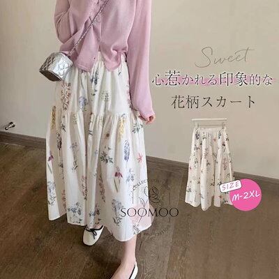 スカート 花柄 フレアスカート レディース ロングスカート ミモレ丈 ボトムス 春夏 スカート ウエストゴム 大きいサイズ ゆったり 体型カバー カジュアル 大人可愛い ひんやり ベーシック シンプ