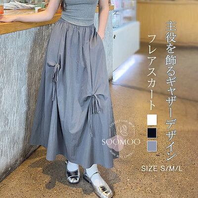 スカート ギャザー フレアスカート レディース ロングスカート ミモレ丈 ボトムス 春夏 スカート ウエストゴム 大きいサイズ ゆったり 体型カバー カジュアル 大人可愛い ひんやり ベーシック シ